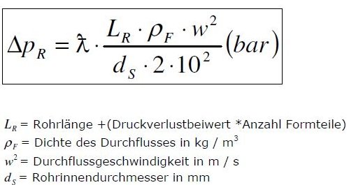 Die Druckverluste in geraden Rohrstrecken errechnen sich wie folgt: