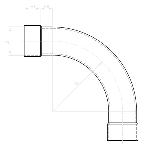 - Biegeradius R in Abhängigkeit vom Rohrdurchmesser
