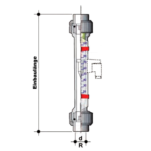| - Messkonus: Polysulfon - Messkonuslänge: 350 mm - Schwebekörper Edelstahl - Dichtung: EPDM (Standard), FPM auf Anfrage - Anschluss: PVC-U Verschraubung mit Klebemuffe - Genauigkeitsklasse: 2,5 nach VDE/VDI 3513, Blatt 2 - Standardausführung: Skala in l/h, NaOH (Natronlauge) 30%ig +20°C ,Dichte: 1,32 kg/dm3, Viskosität 13.5 mPa*s - Nur für flüssige Medien. Bitte Dichte und Temperatur angeben. Sonderskalen auf Anfrage. Zubehör wie z.B. Grenzwertgeber, Sonderskalen und andere Anschlussarten gegen Aufpreis. |