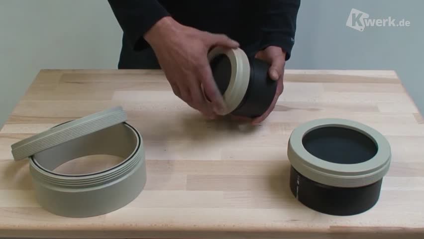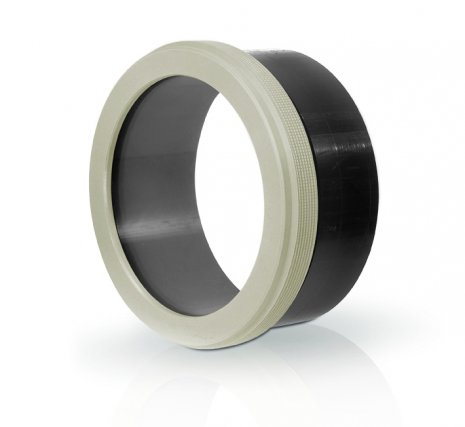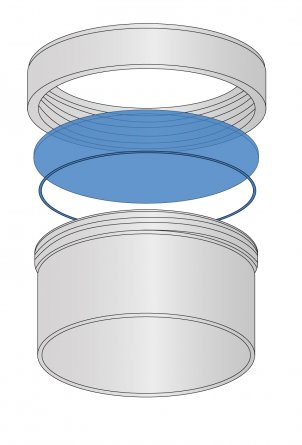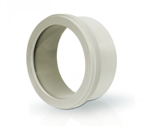 STUTZEN AUS PE, ÜBERWURFMUTTER AUS PP, DECKEL AUS PVC TRANSPARENT, O-RING AUS EPDM