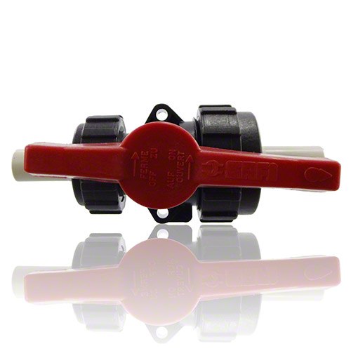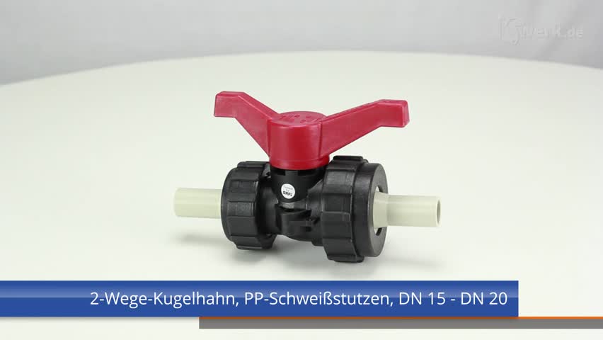 2-Wege-Kugelhahn PPGF, PP-Muffen, EPDM = roter Hebel