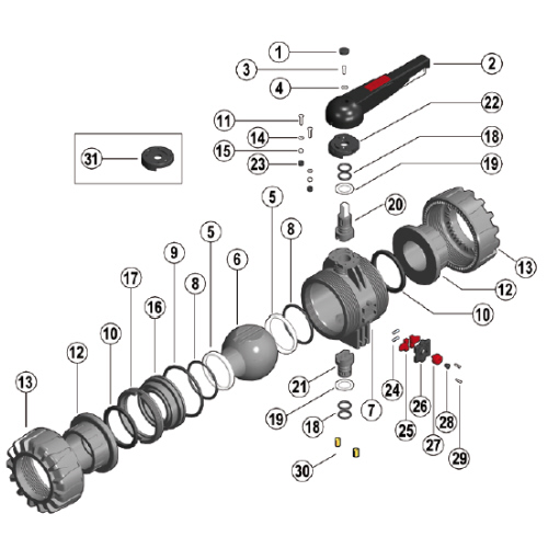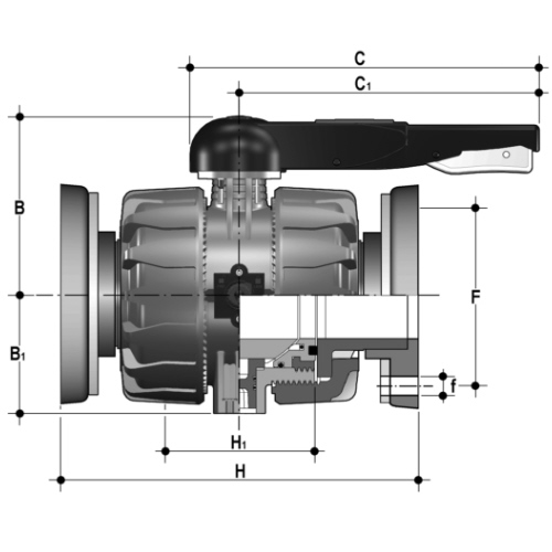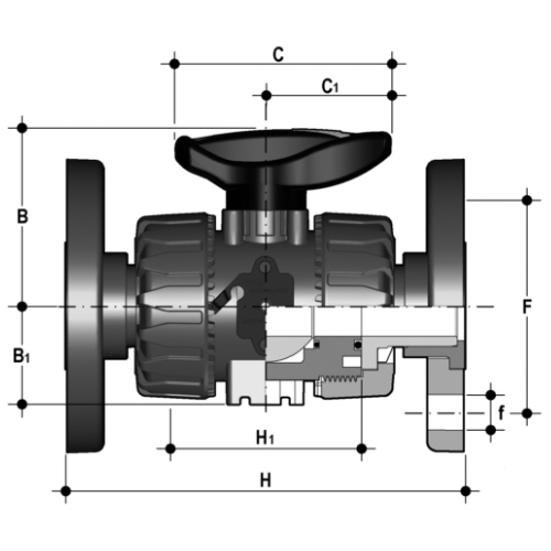 PVC-U Kugelhahn VKD, Festflansch, FPM