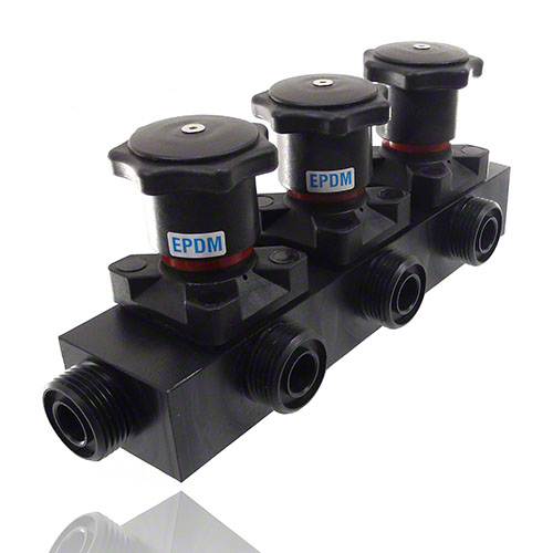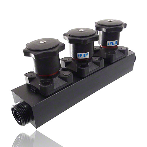 Mehrwegeventil aus PE mit drei Handantrieben, Membrane PTFE